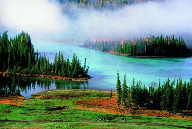 天山天池、喀納斯、敦煌莫高窟、雅丹地貌魔鬼城、玉門關、吐魯番、葡萄溝、坎兒井鳴沙山月牙泉、張掖七彩丹霞、平山湖大峽谷、寧夏沙坡頭、內蒙通湖草原空調專列十二日游