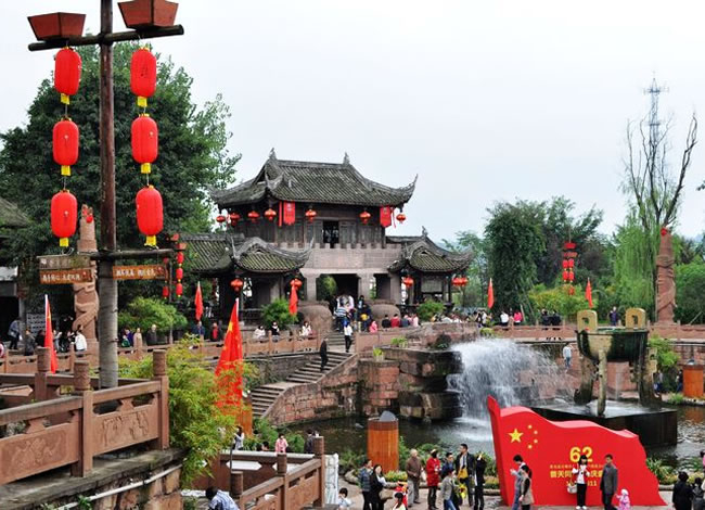 古鎮(zhèn)屬四川省歷史文化古鎮(zhèn)及省級(jí)旅游風(fēng)景區(qū)。古鎮(zhèn)不僅風(fēng)光秀麗、環(huán)境優(yōu)美,還是馳名中外的天然影視攝影基地。古鎮(zhèn)主要特色是:古街、古樹(shù)、古廟、古水陸碼頭、古建筑和古樸的民風(fēng)民俗。是國(guó)家文化部命名的中國(guó)民間藝術(shù)(火龍)之鄉(xiāng)、國(guó)家級(jí)環(huán)境優(yōu)美小城鎮(zhèn)。素有“影視城”、“中國(guó)好萊塢”之稱(chēng)。
