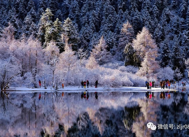 冬季的九寨溝,每一片彩林都訴說著詩意,每一汪海子都裝點(diǎn)著夢幻,每一道瀑布都蘊(yùn)含著遐想。當(dāng)晶瑩的雪花散落在碧綠的海子上,當(dāng)斑斕而靜謐的湖面泛起微小的漣漪,當(dāng)棧道上的片片雪花飄落在你的頭頂、眉間和臉頰,一切都是那么幽然,那么清澈,目之所及,皆是玲瓏剔透,心曠神怡。
