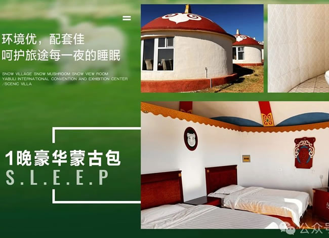 酒店標準:全程 3 晚當?shù)鼐W(wǎng)評 4 鉆酒店,1 晚蒙古包,升級一晚網(wǎng)評 5 鉆酒店。
